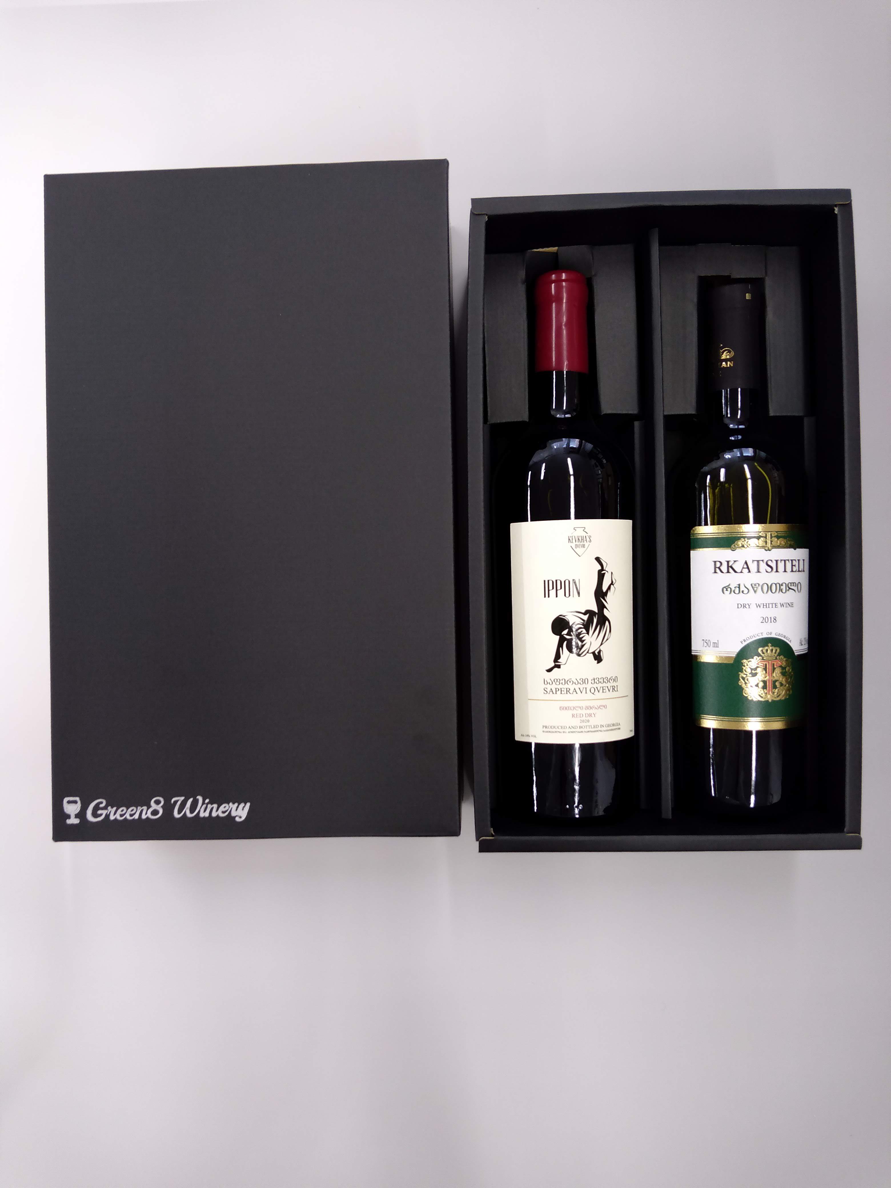 ジョージアの力強く大胆な味わいの赤ワインと和食にもピッタリ辛口白ワインの2本ギフト